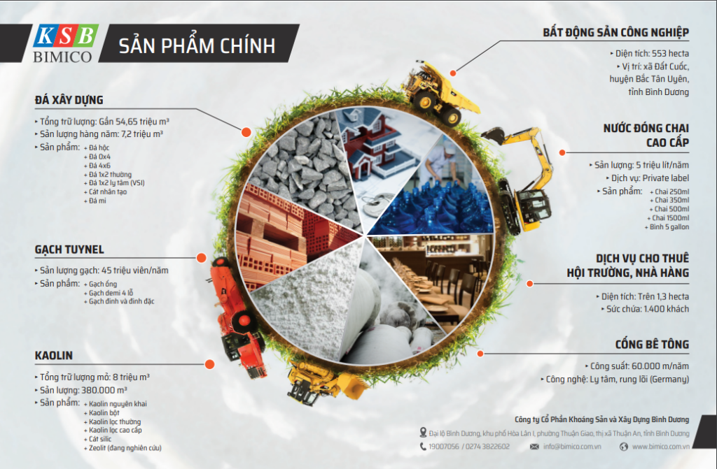 Được biết đến như một trong những doanh nghiệp hàng đầu về cung cấp vật liệu xây dựng tại khu vực Đông Nam Bộ với hơn 25 năm phát triển không ngừng, Công ty Cổ Phần Khoáng Sản và Xây Dựng Bình Dương chuyên cung cấp các sản phẩm như đá xây dựng, cát nhân tạo, kaolin, gạch Tuynel và gạch không nung